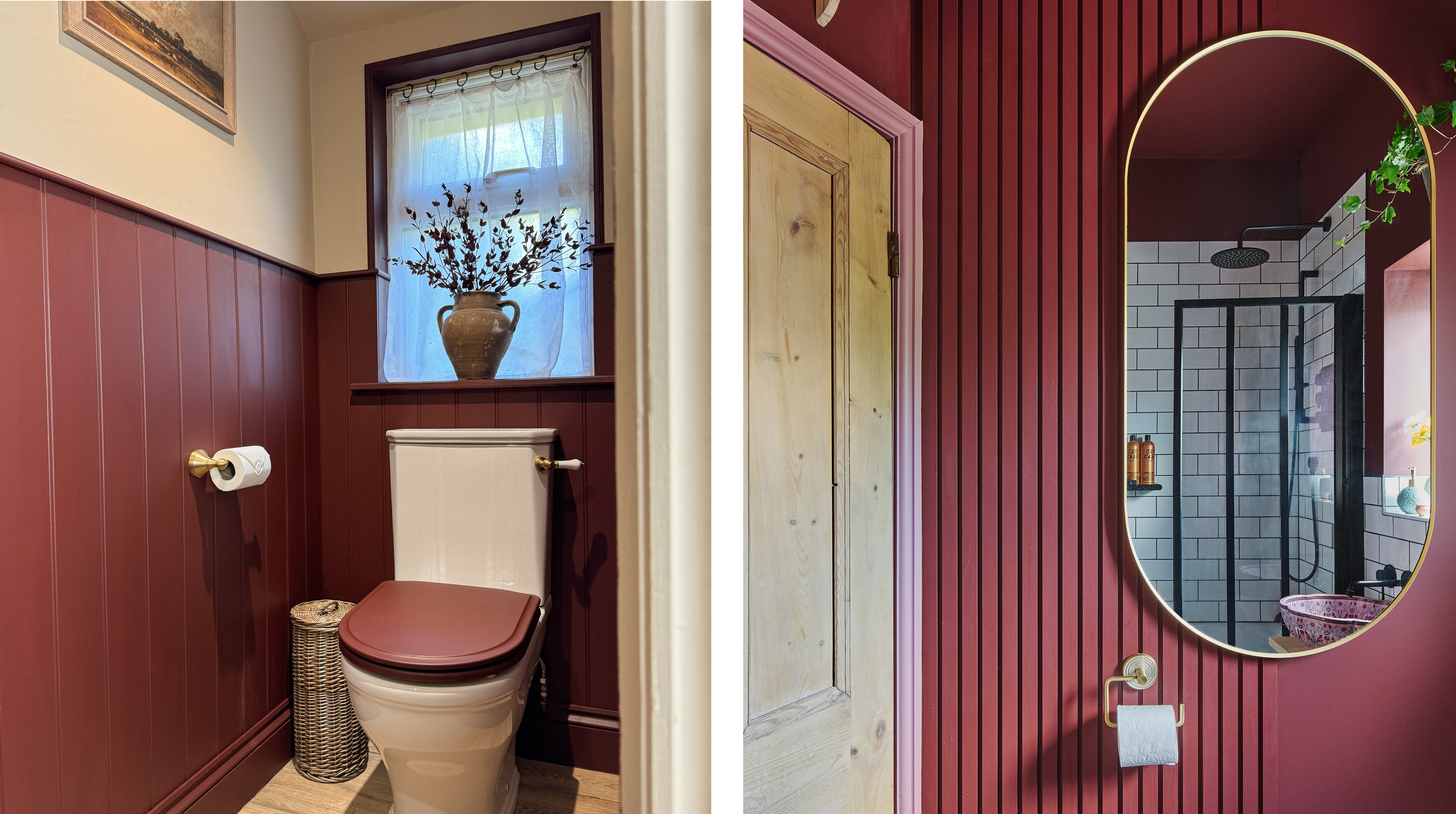 Left: Valentina panels, Warm Clay walls by @cottagerenovationcwmrhys.
