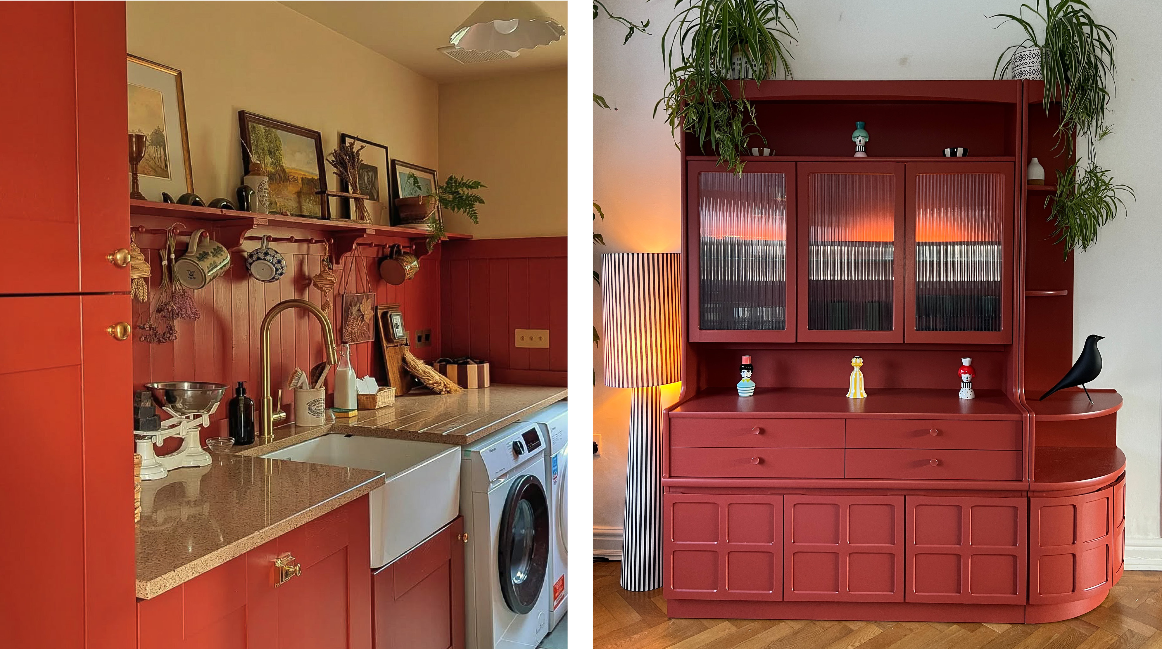 Left: Fire Brick cabinets, Sandhaven walls by @the_vegan_cottage.