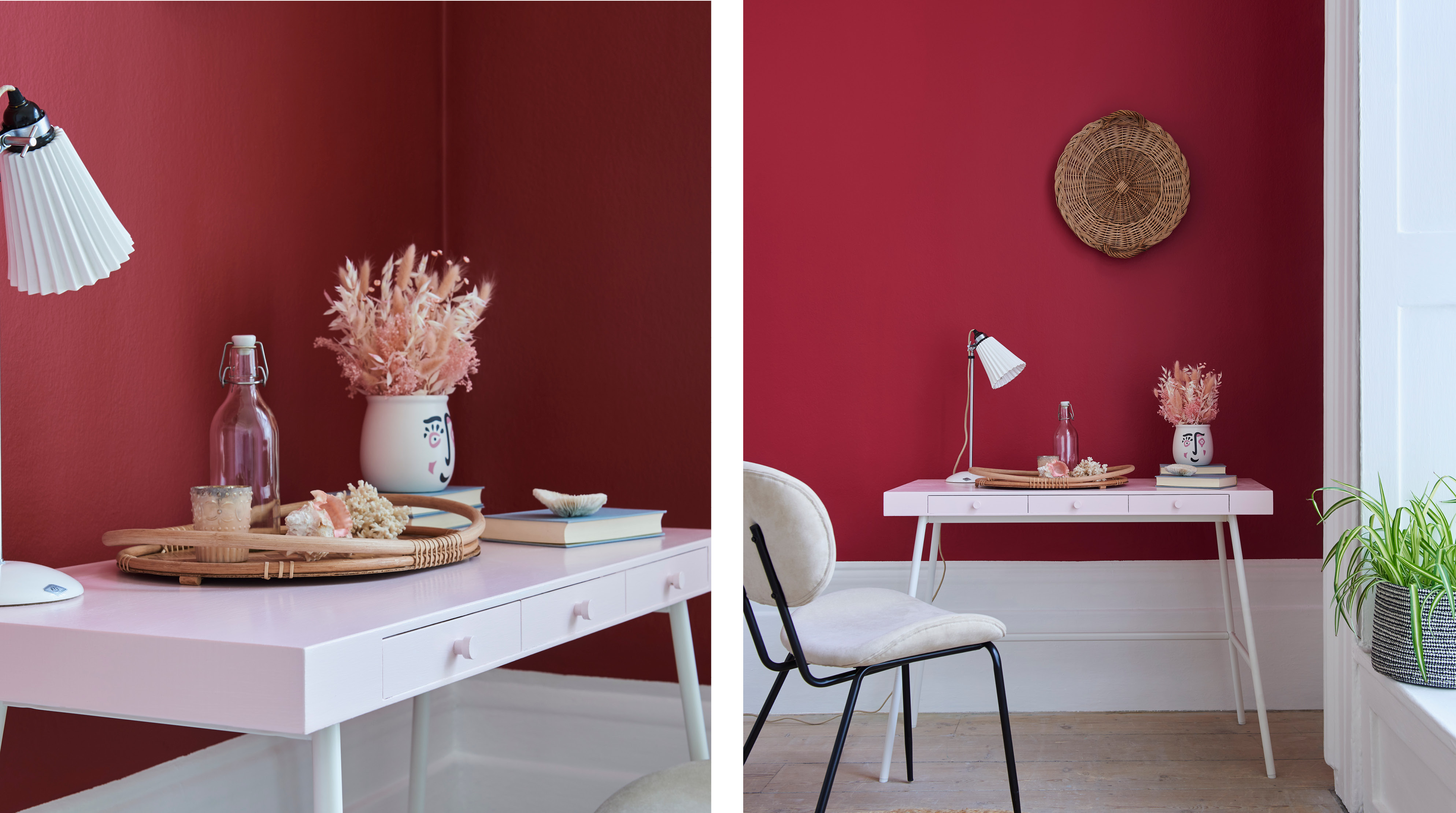 Left and right: Soho wall, China Rose desk.