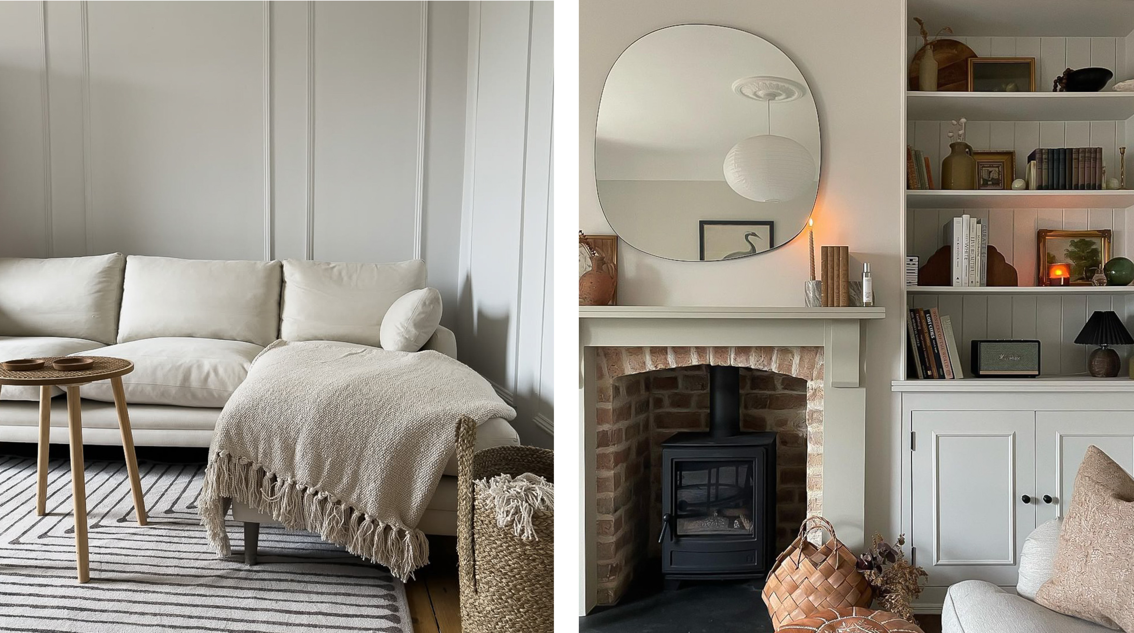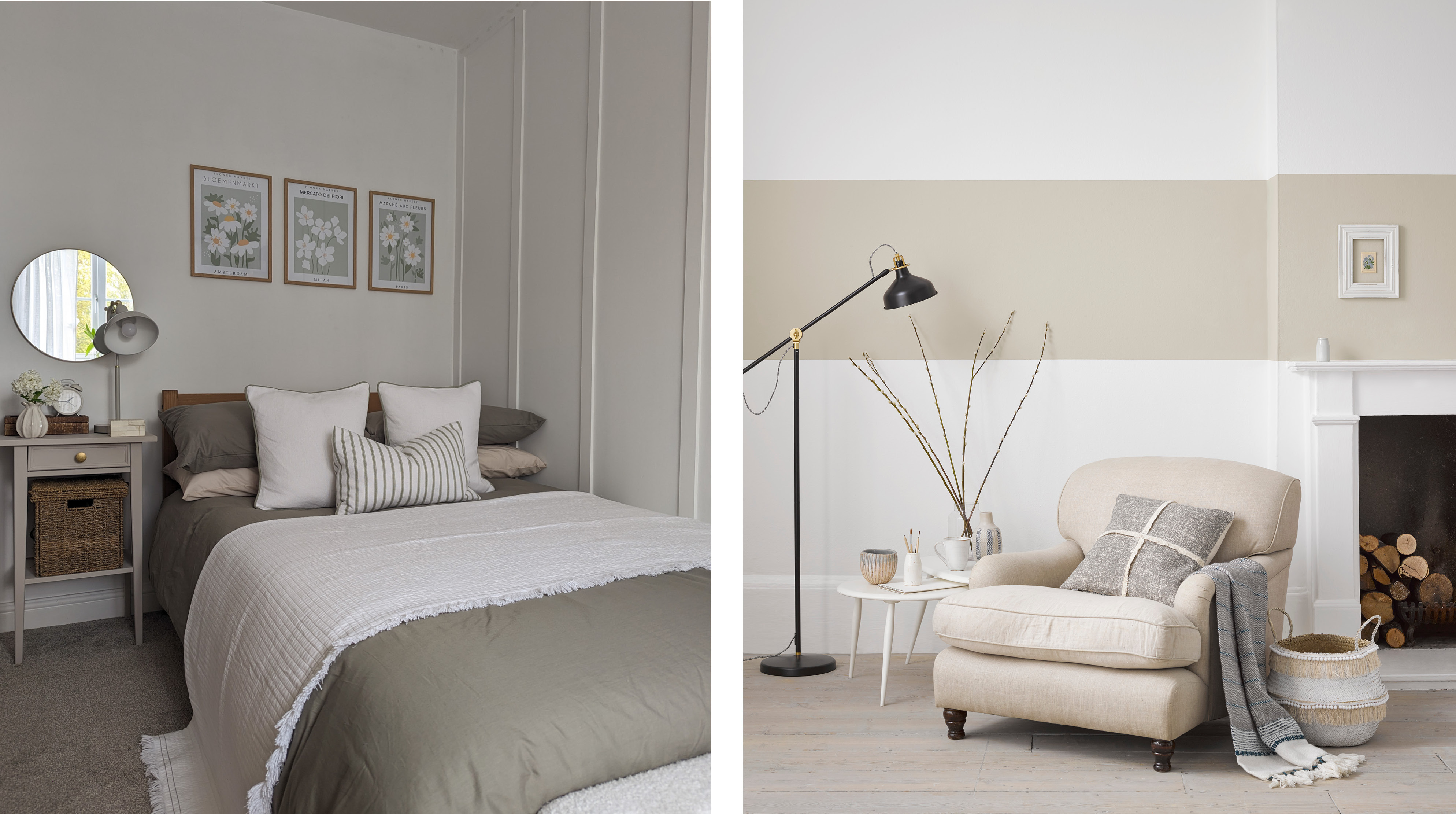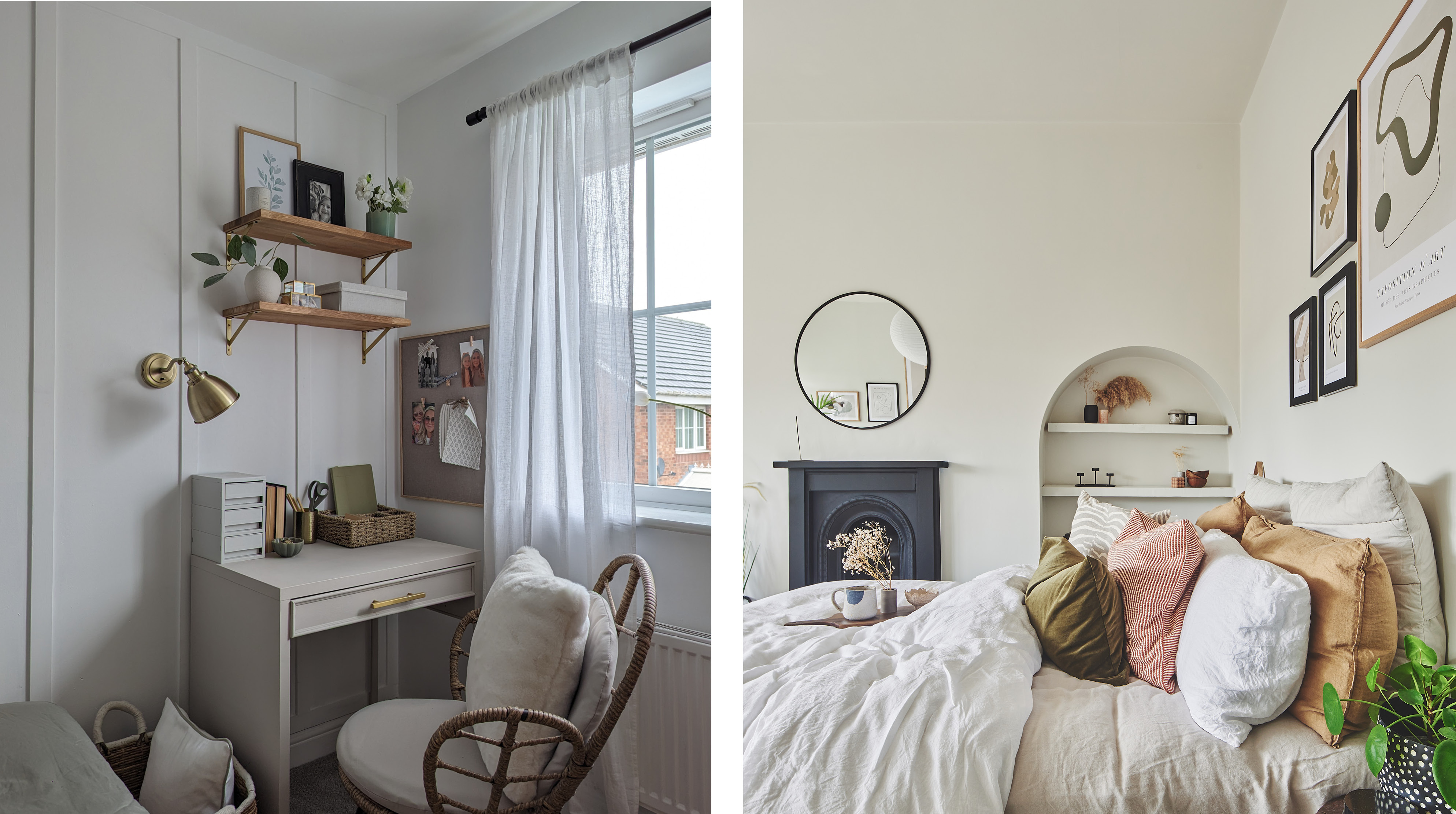 Left: Cotton wall and woodowork by @at_home_with_becks32