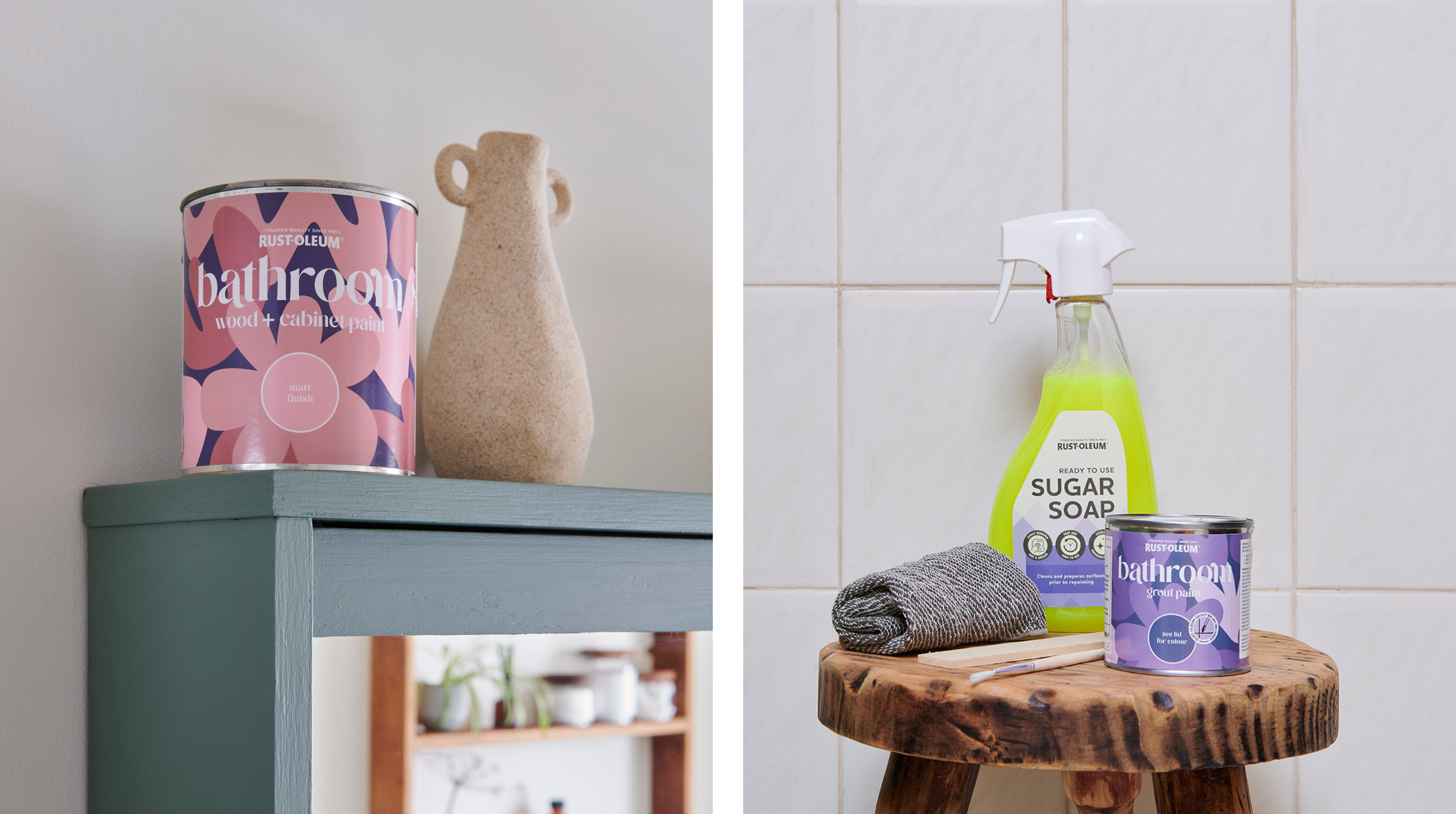 Give your bathroom a fresh new look by transforming walls, cabinets, tiles and grout with the complete Bathroom Collection.